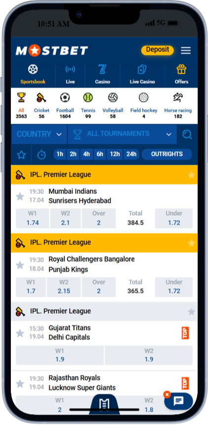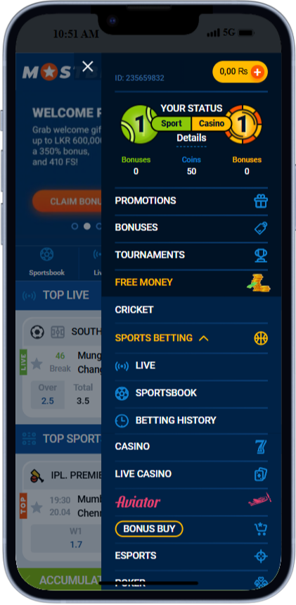 The Mostbet app lets players in Sri Lanka bet on over 40 sports and play 10,000+ games on the go. Players will find the same features as on PC, like bonuses, support, and the same payment tools.